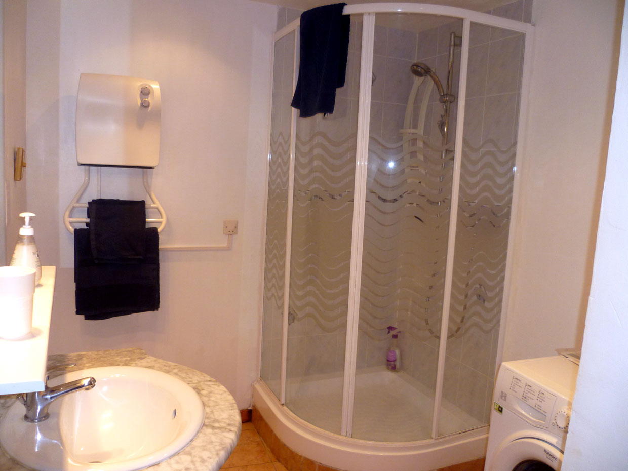 Entrance hall leading to the 2 bedrooms - one double (Antique French bed 190x140) overlooking the front and one twin at the rear. The hallway has the unusual and distinctive feature of the granite bedrock of the hillside forming part of the exterior wall. Shower room with washbasin , heated towel rail and Washing Machine. Separate toilet with washbasin.