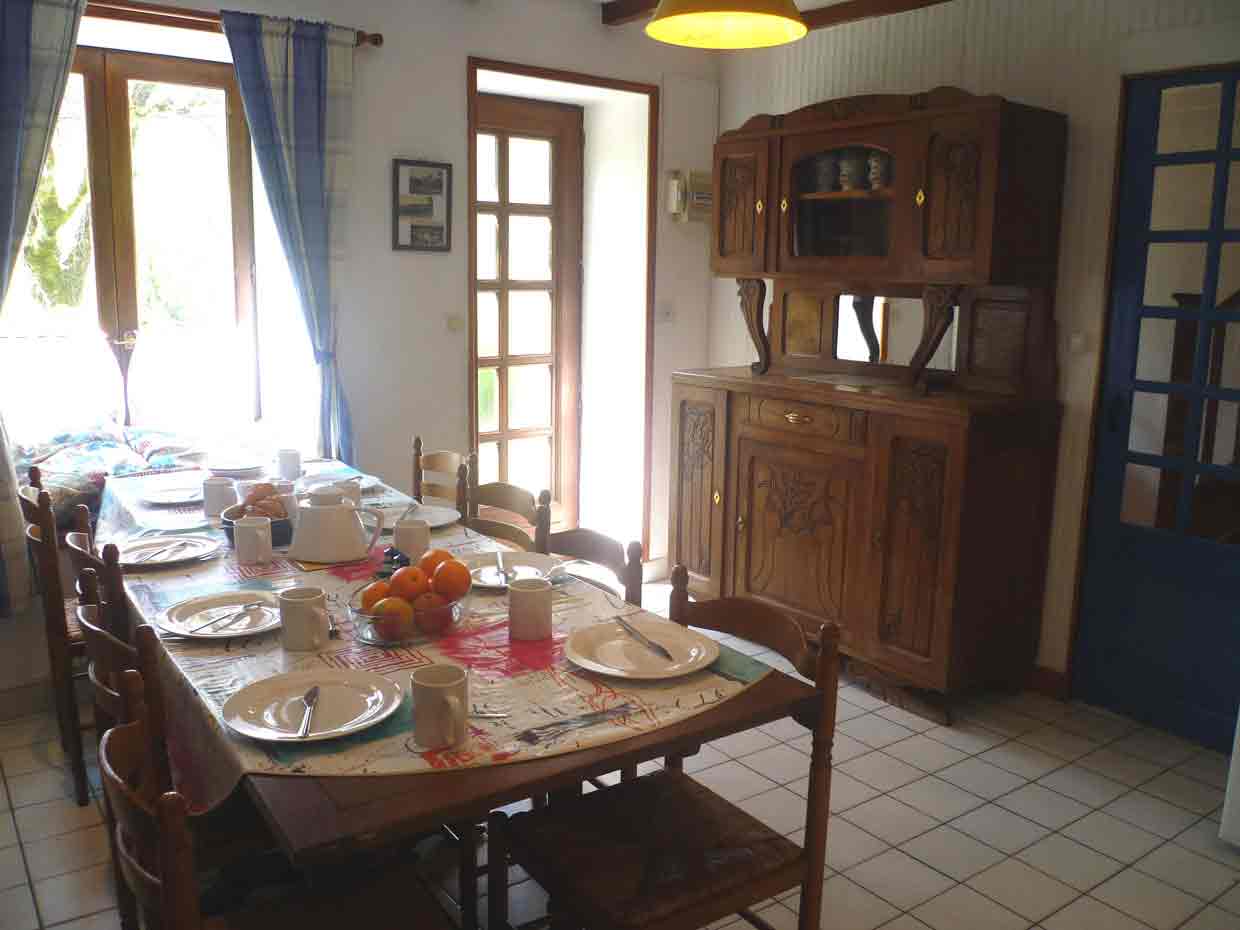The Kitchen/Diner is well appointed with Cooker ( gas hob/electric oven), Dishwasher, Fridge/Freezer, Microwave, Washing Machine, Coffee Machine,Toaster,Kettle and woodburner. Entrance hall with stairway (stairgate at top) to 2 of the bedrooms. A spacious Lounge (34sqm ),with large windows, beams and woodburner. Well equipped with TV (Free incl. Netflix, Disney+, Canal+, French channels), DVD Player. Information pack and a large selection of books and games.