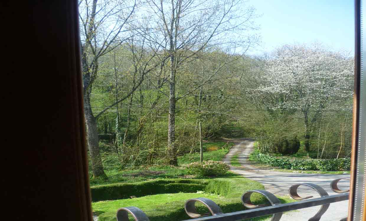 From Lounge stairs - 1 twin bedroom with oak floorboards overlooking the woods. 1 double bedroom (Antique French bed 190x140) with oak floorboards and wood-panelled ceiling and beams. Views again to the glorious woods. Shower room with WC ,washbasin , heated towel rail and shaver socket.