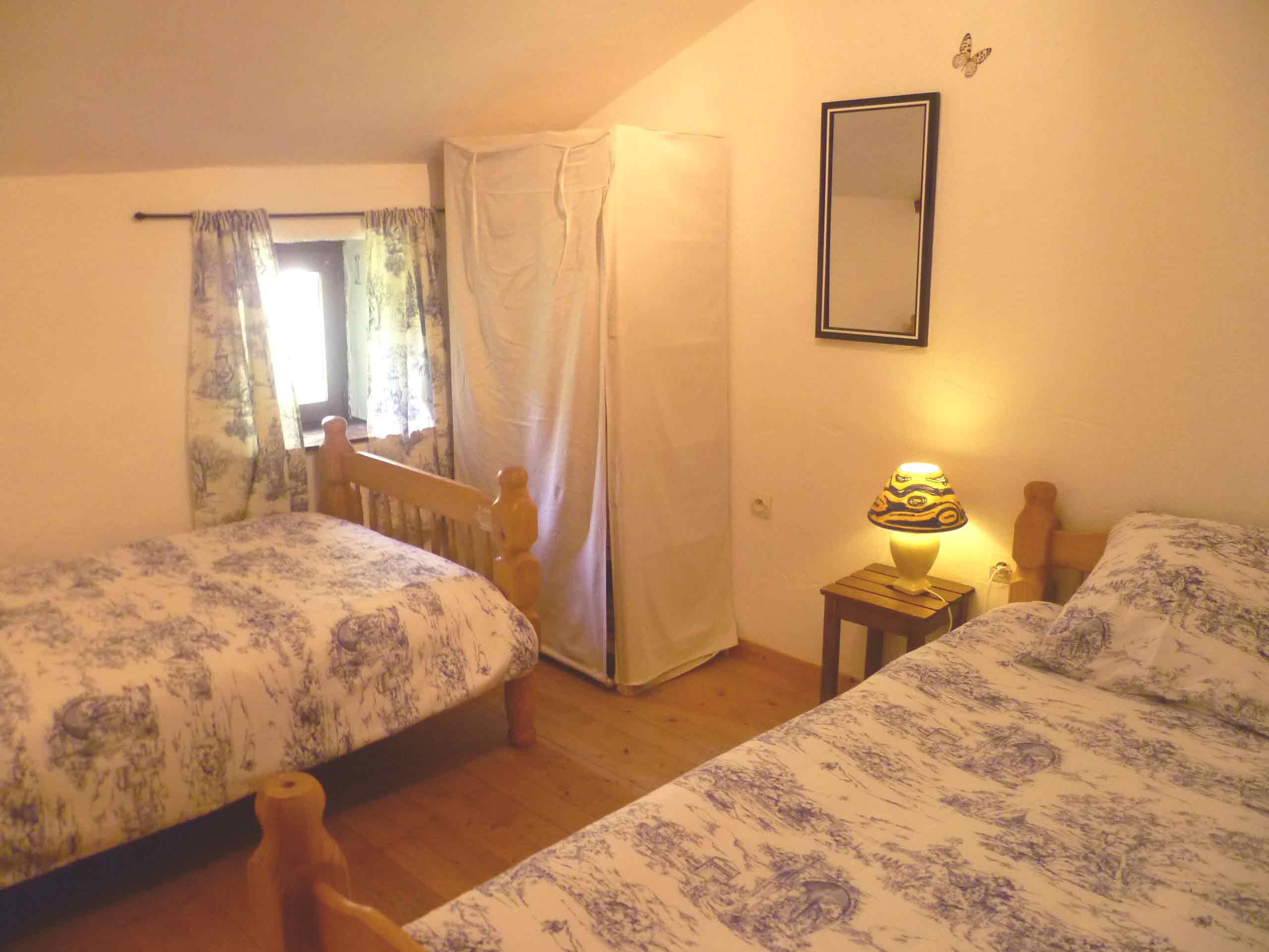 There is one double (Antique French bed 190x140) and one twin bedroom, and the latter can accommodate an extra child with the provision of an additional bed.